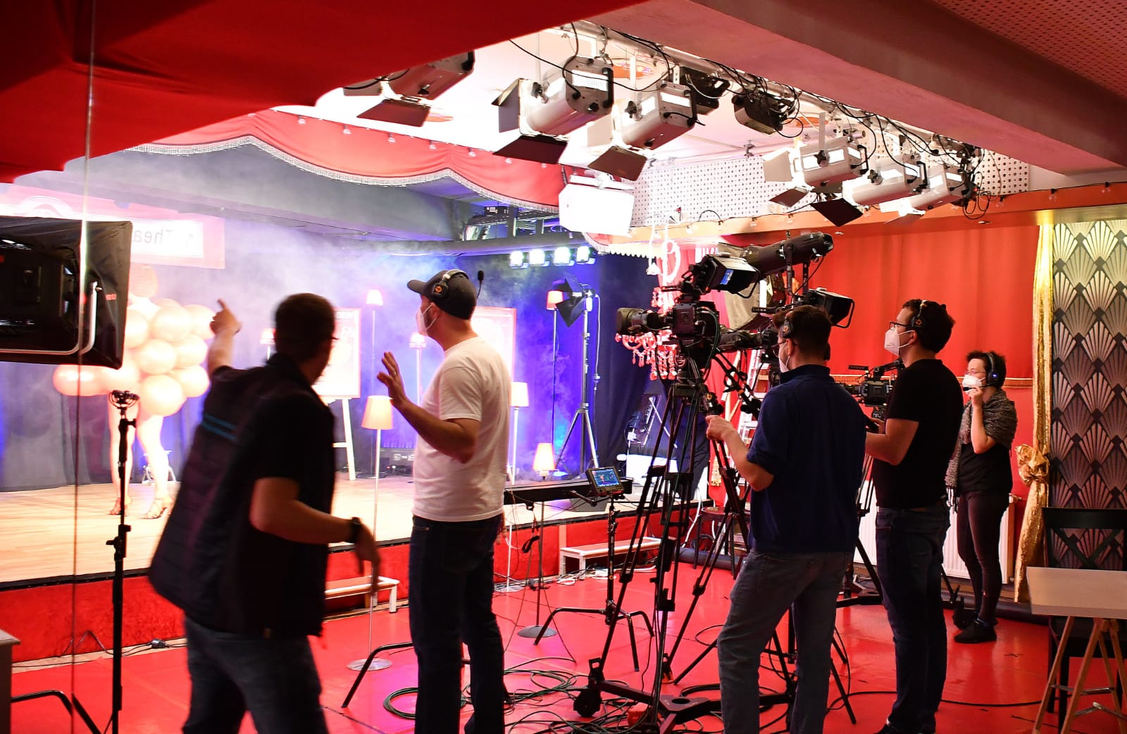 Den (räumlichen) Rahmen für die kommende Sendung "Kunst im Kontext" des Franken Fernsehens bildet diesmal unser neu gestaltetes Theater. Julia ist dabei u.a. Teil der illustren Interview-Runde.
