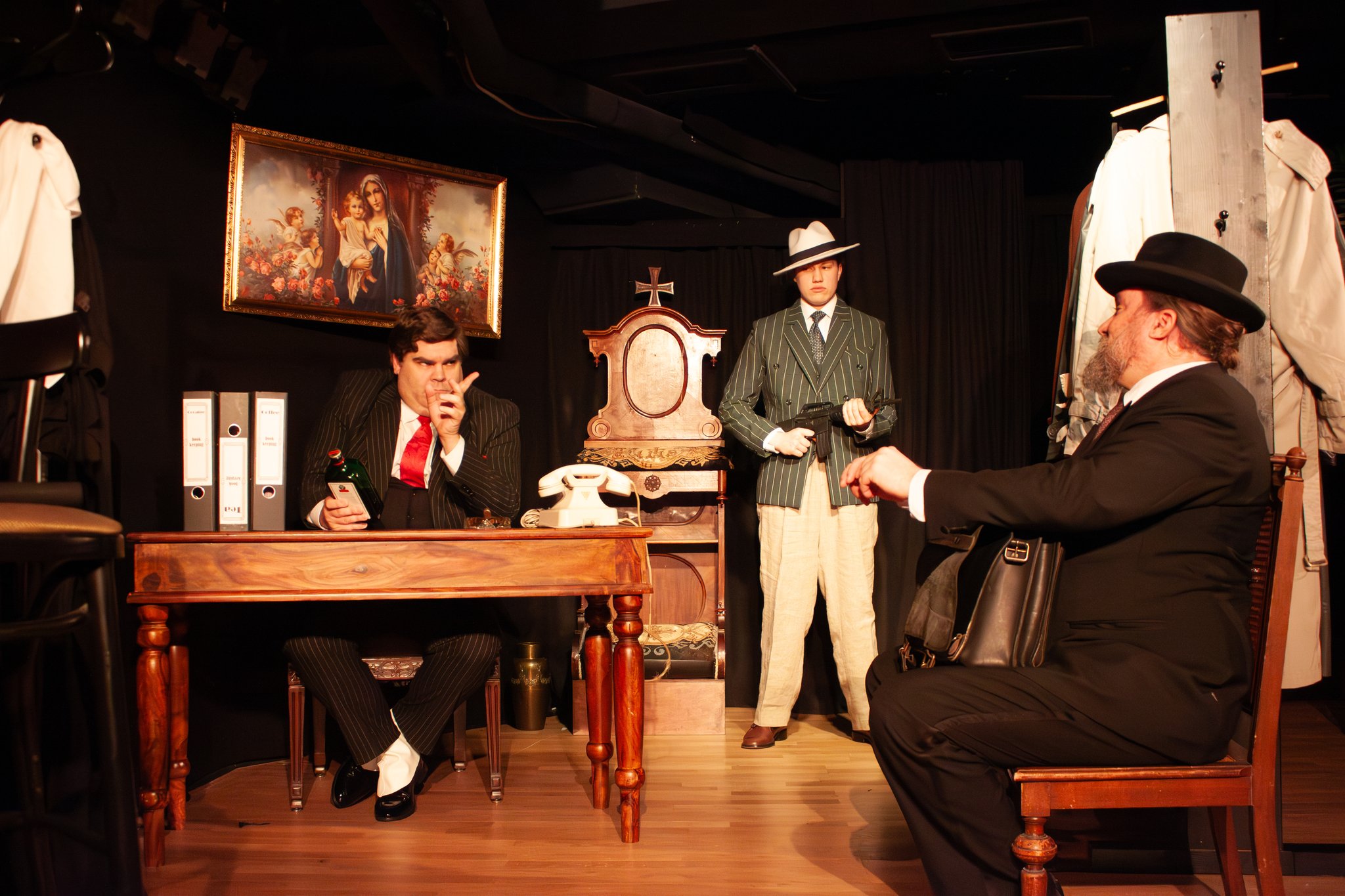 Wie hat es dieser kleine Einwanderersohn italienischer Eltern aus einem der ärmsten Stadtteile New Yorks an die Spitze des organisierten Verbrechens geschafft und wurde zu einem der reichsten und einflussreichsten Männer Amerikas? Dem geht diese Revue auf den Grund, teils dokumentarisch, teils fiktiv, mit spannenden und urkomischen Szenen, angereichert mit Slapstick im Stil alter Stummfilme, begleitet von einer Live-Band. Es gibt rasante Verfolgungsjagden, ebenso rasanten Charleston, brutale Gangster, reizende Prostituierte und dann ist da noch Mama – Teresina Capone, die ihren Alphonse 1899 in Brooklyn zur Welt brachte. Ist sie vielleicht der eigentliche Boss?