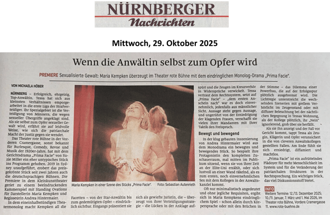 Auszug aus der Besprechung von Michaela Höber in den Nürnberger Nachrichten vom 29.10.2025: