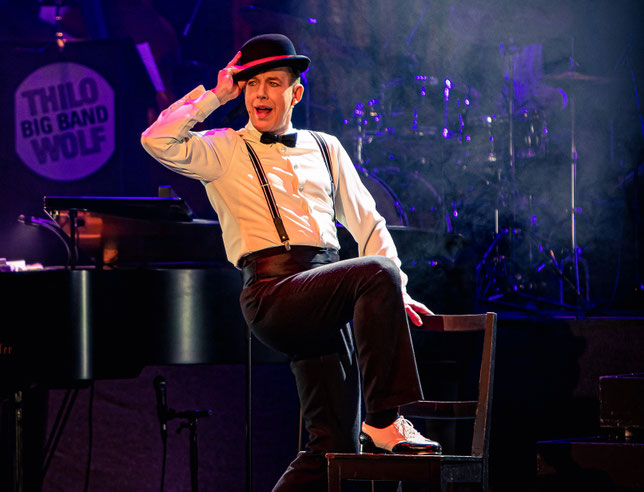 Die Thilo Wolf Big Band passt zwar nicht auf die rote Bühne, aber Gaines Hall hat den Klangkörper in Form hochwertiger Orchesteraufnahmen dabei und wird als Solokünstler sein Publikum wie gewohnt begeistern. Dazu gibt es viele spannende Show-Geschichten, großartige Kostüme und unendlich viel Liebe für die Sache. Freuen Sie sich auf einen Abend voller Swing, Steptanz und Entertainment mit diesem einzigartigen Programm.