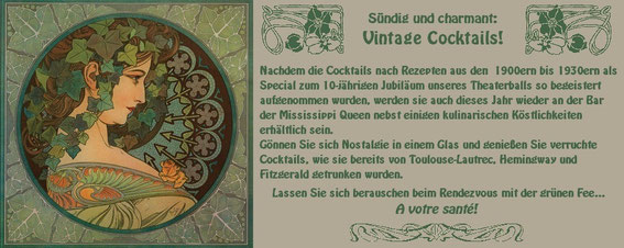 Bei dieser opulenten Festlichkeit sind Sie eingeladen sich ganz der Nostalgie hinzugeben: Bestaunen Sie den sinnlichen Tanz bezaubernder Burlesque-Diven, lassen Sie sich von heißem Jazz zum Tanzen verführen und erfreuen Sie sich am stimmungsvollen Ambiente des alten Schaufelraddampfers Mississippi Queen.