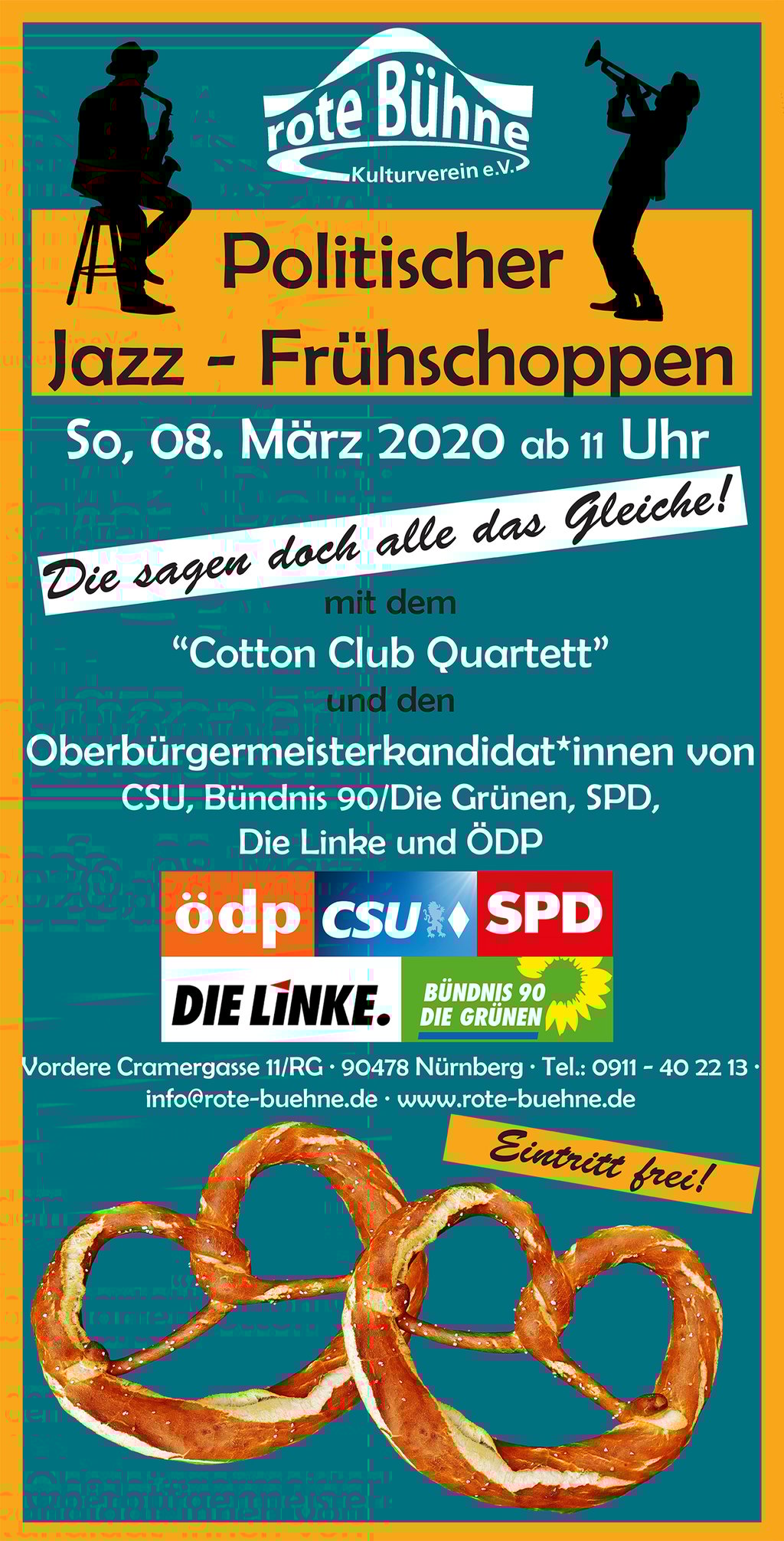 Ein unterhaltsamer und informativer Jazz-Frühschoppen mit dem „Cotton Club Quartett“ und den Oberbürgermeisterkandidat*innen Verena Osgyan von