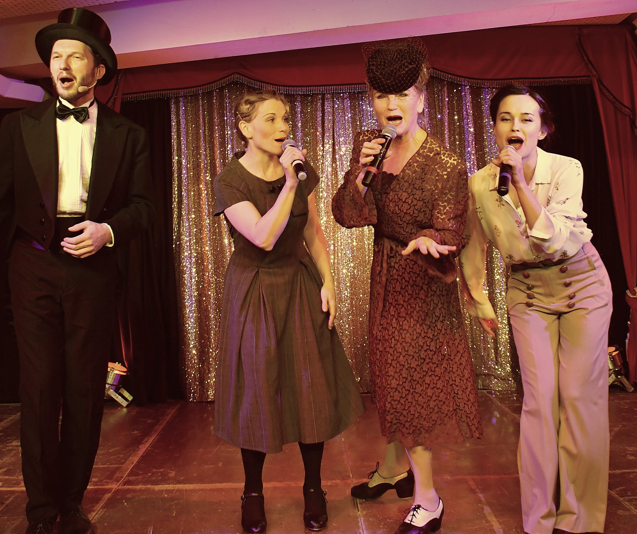 Eine bunte Revue voll swingender Jazzmusik, Tanz, Gesang, Kabarett und Komik entführt zurück in das Jahr 1934. Freches politisches Kabarett, frivoler Charleston, virtuoser Steptanz und burleske (fast-)Nackttänze zeigt das vierköpfige Ensemble des Kempinsky Kellerkabaretts.